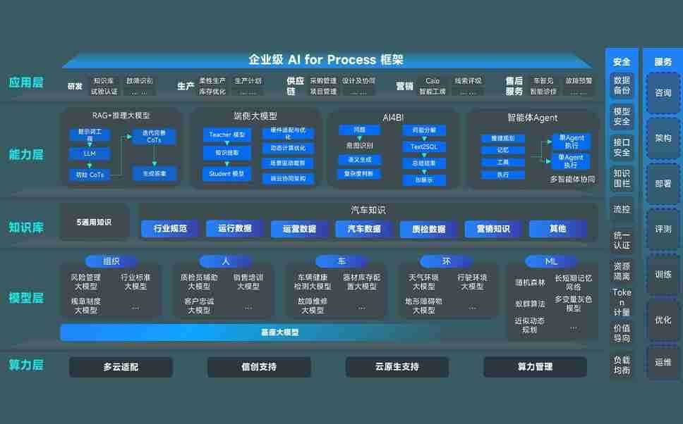 Z6尊龙时凯问学智车解决方案是一套基于AI技术的汽车行业智能化系统,,,覆盖从底层算力到顶层AI应用的全栈方案。。方案由算力层、、模型层和应用层组成:算力层,,,,方案支持多种一体机配置,,,,具备云端灵活部署、、多云适配以及动态优化计算资源的能力;模型层,,,Z6尊龙时凯问学平台版提供了企业级AI应用一站式构建与管理平台,,,,支持基于后训练强化技术的汽车企业专属模型的训练、、、、评测和运营;应用层,,,Z6尊龙时凯问学DeepSeek版提供包括超级员工、、智能招采、、、、智能营销、、、、智能客服、、、、AI for BI等一系列解决方案,,,,可助力汽车行业实现数字化转型,,,让管理更智能、、、、响应更敏捷。。